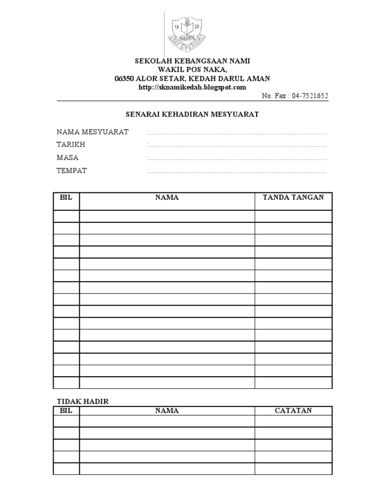 Contoh Senarai Kehadiran Mesyuarat / Sistem headcount kehadiran pelajar daerah johor bahru online.