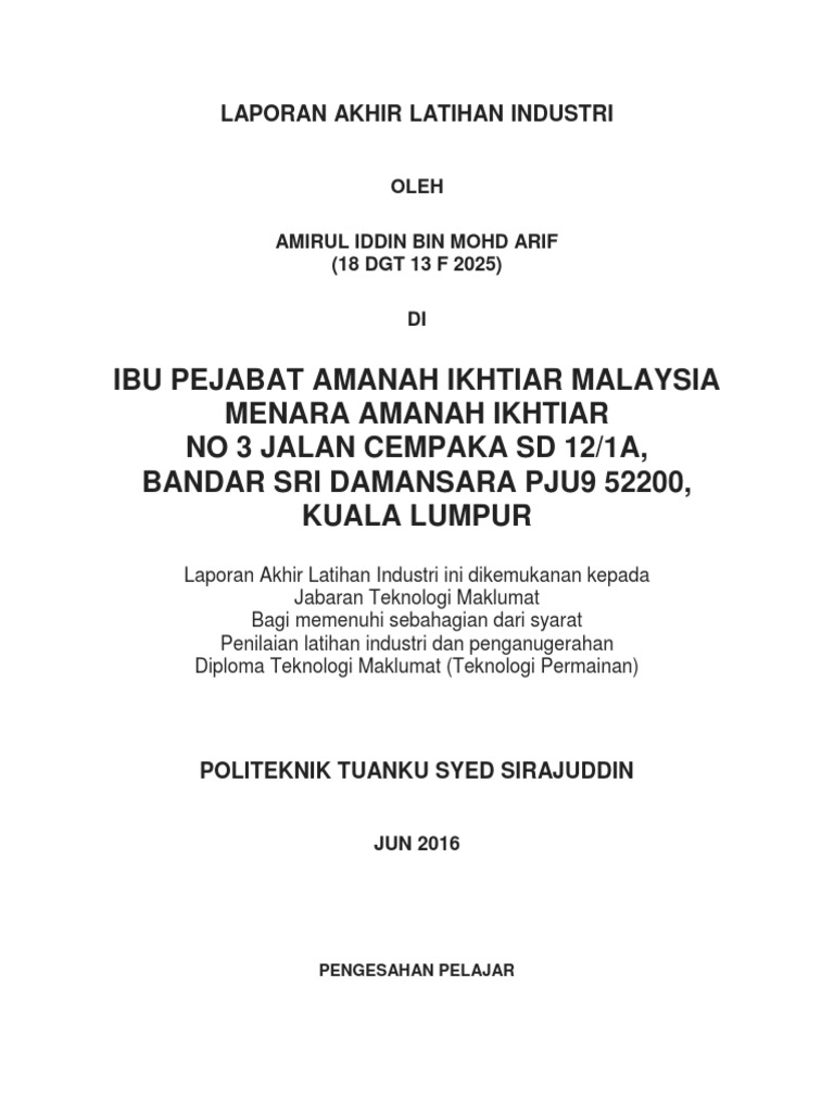 Latihan industri vitechcomputercentre nama : Prosidur perancangan li (industrial training planning. Sekiranya anda mempunyai sebarang persoalan. Anis zulaikha binti emran 045554 diploma teknologi maklumat multimedia universiti sultan zainal abidin. Muhammad iqbal bin mohd aminuddin kursus :